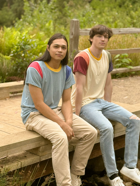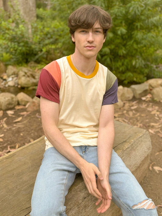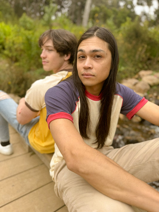 UNISEX RINGER TEE - BROWN / LAVENDER
