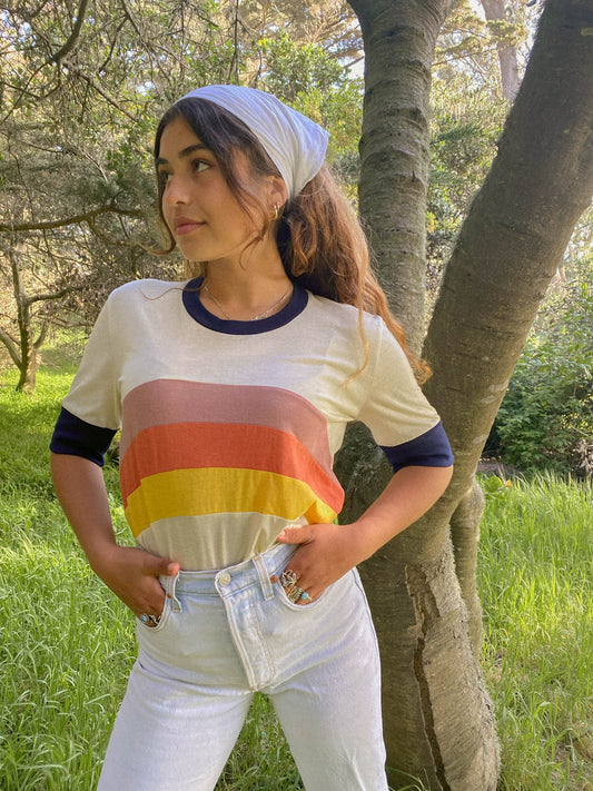 OVER THE RAINBOW TEE - NAVY RETRO STRIPE