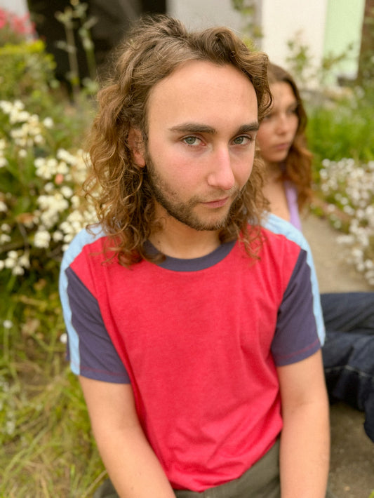 OVER THE RAINBOW TEE - MAROON RETRO STRIPE