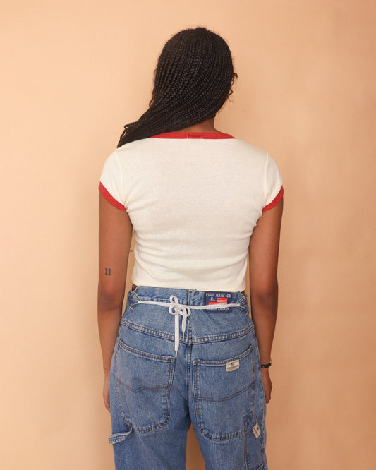 OVER THE RAINBOW TEE - MAROON RETRO STRIPE