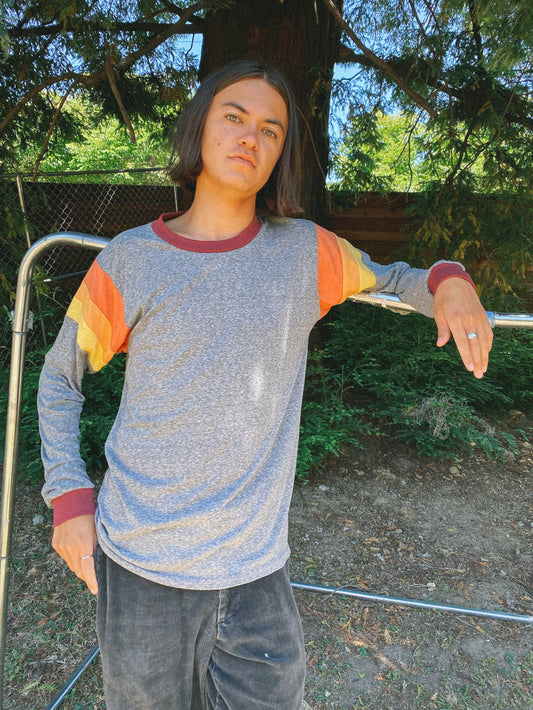 UNISEX RINGER TEE - BROWN / LAVENDER