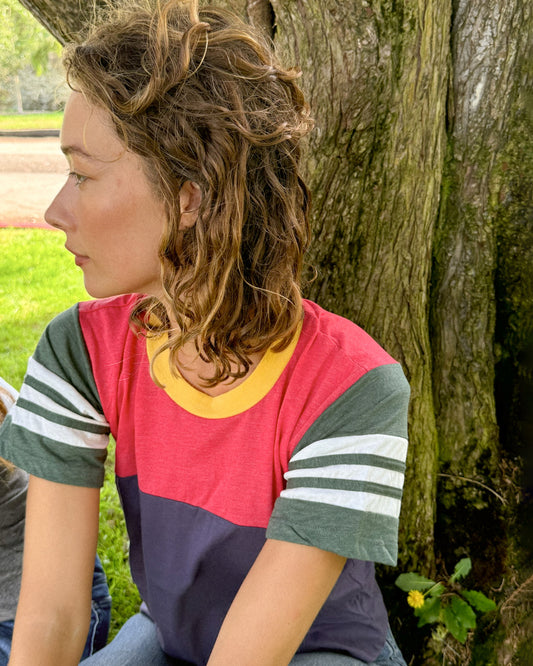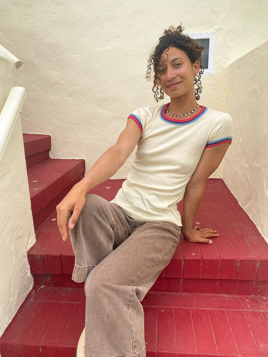 UNISEX RINGER TEE - BROWN / LAVENDER