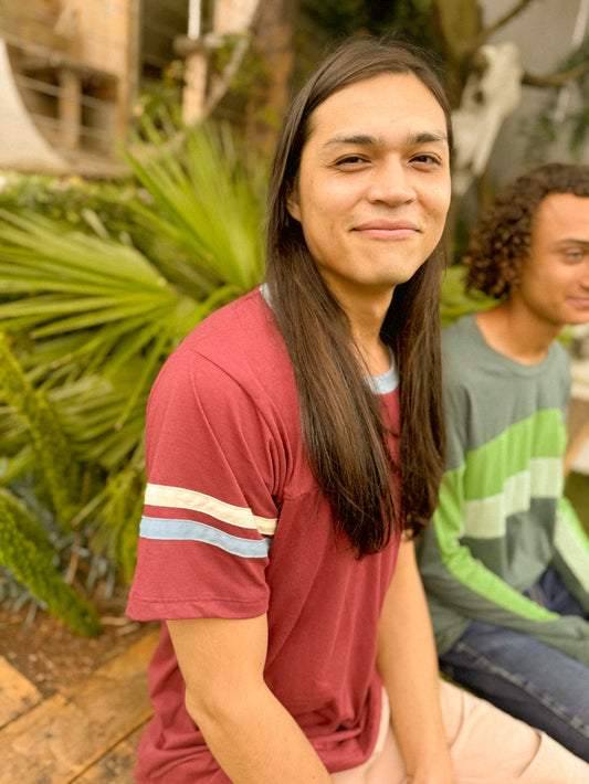 OVER THE RAINBOW TEE - MAROON RETRO STRIPE