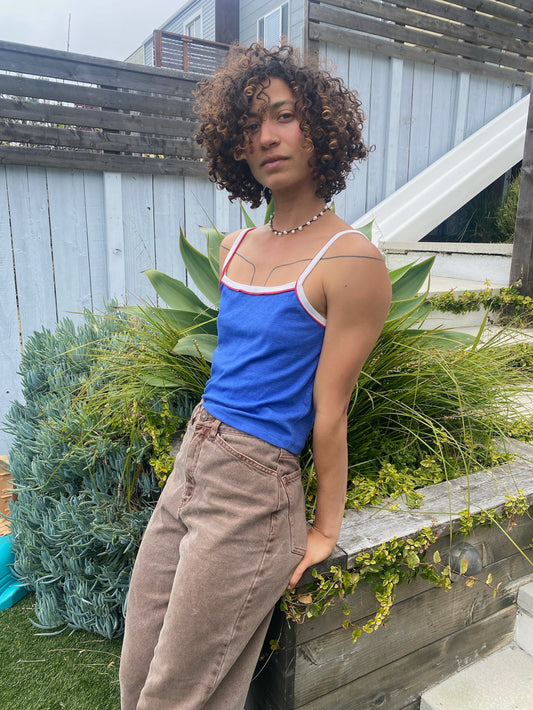 UNISEX RINGER TEE - BROWN / LAVENDER