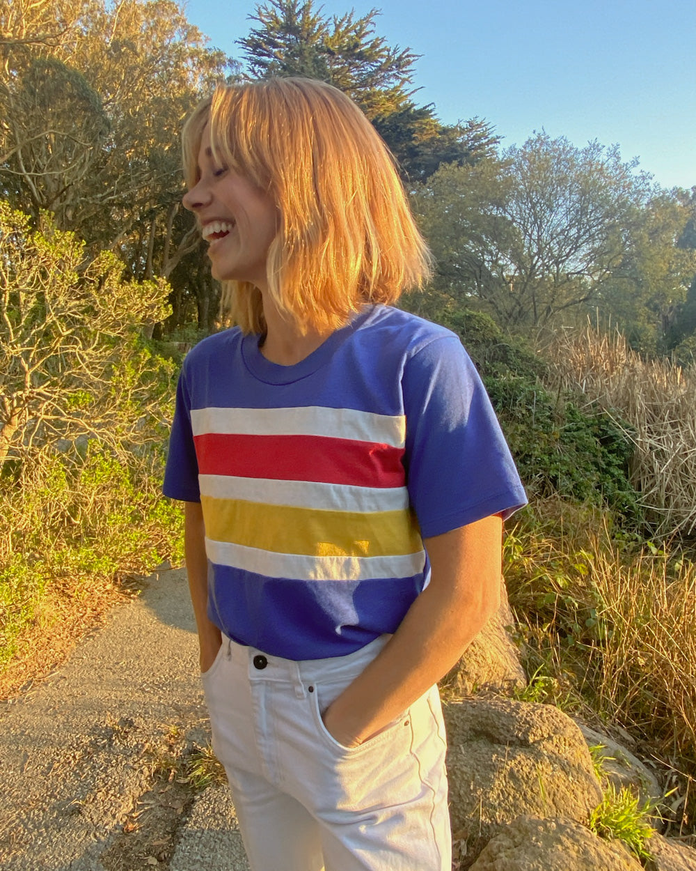 The sewn-in front panels on this tee are inspired by a favorite vintage striped sweater.